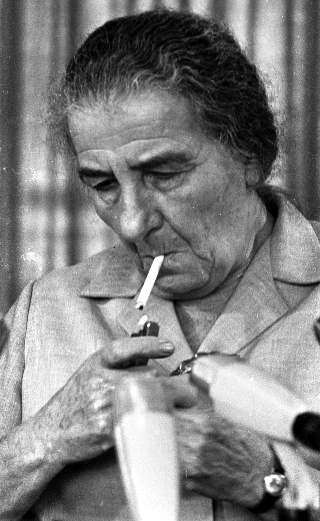 ראשת הממשלה גולדה מאיר מעשנת, מסיבת עיתונאים בר-טל שלום