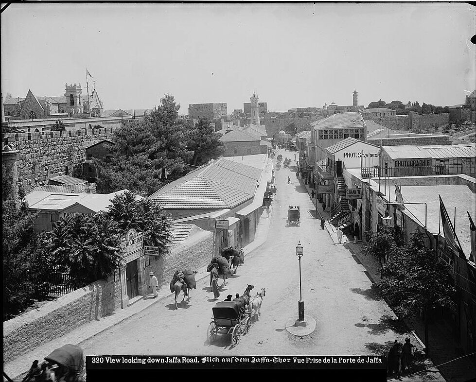 בתצלום זה אפשר לראות רחוב שלם שהוקם בצמוד לחומת העיר העתיקה, בואכה שער יפו. היה זה רחוב מסחרי בכניסה הראשית לעיר העתיקה. בתי הרחוב נבנו בעיקר במחצית השנייה של המאה ה־19, עם "היציאה מהחומות" של העיר העתיקה.
