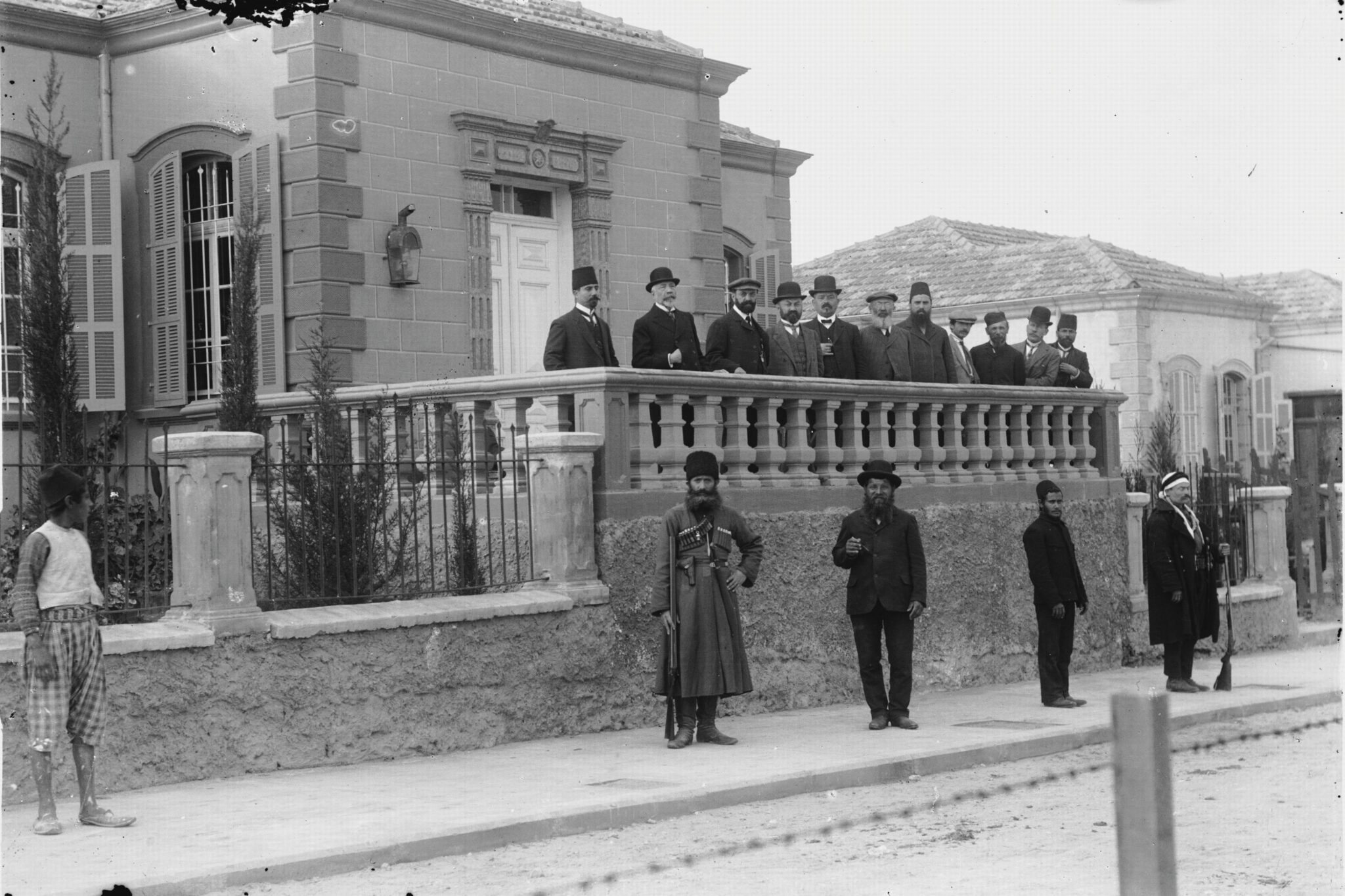 שדרות רוטשילד 16, בית צינה ומאיר דיזנגוף, ראש הוועד עם חברי הוועד של תל אביב על מרפסת הבית סוסקין אברהם